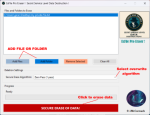 Suitable for windows 10/11, the software is a breeze to use, just add your file/folder/data and click secure erase and it’s gone!