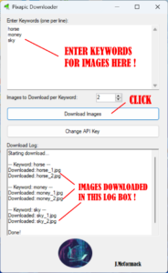 Well, Pixapic Downloader will do all of this and the click of a mouse! Simply enter your keywords and select and folder and the software will download the specified images based on your keyword list and how many images per keyword !